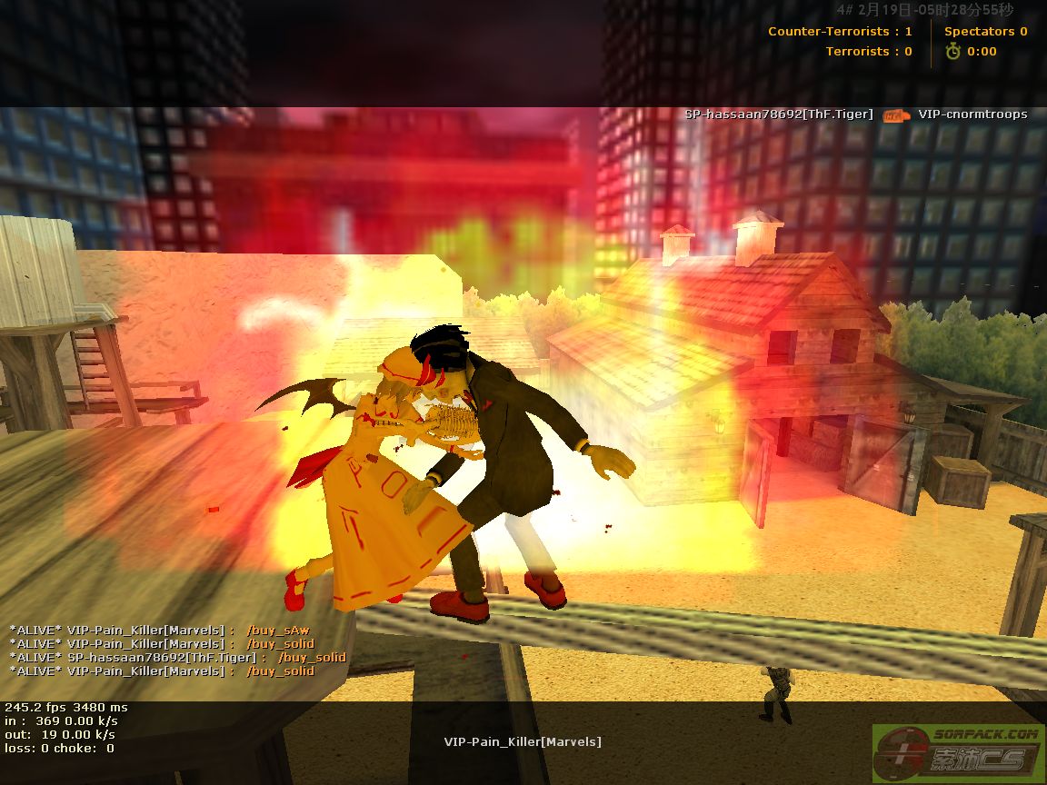 如视频所示   pain_killer变成杀人王飞上屋顶准备跳上线桥之前连续吃了两发闪光弹(面闪)
